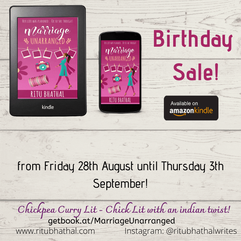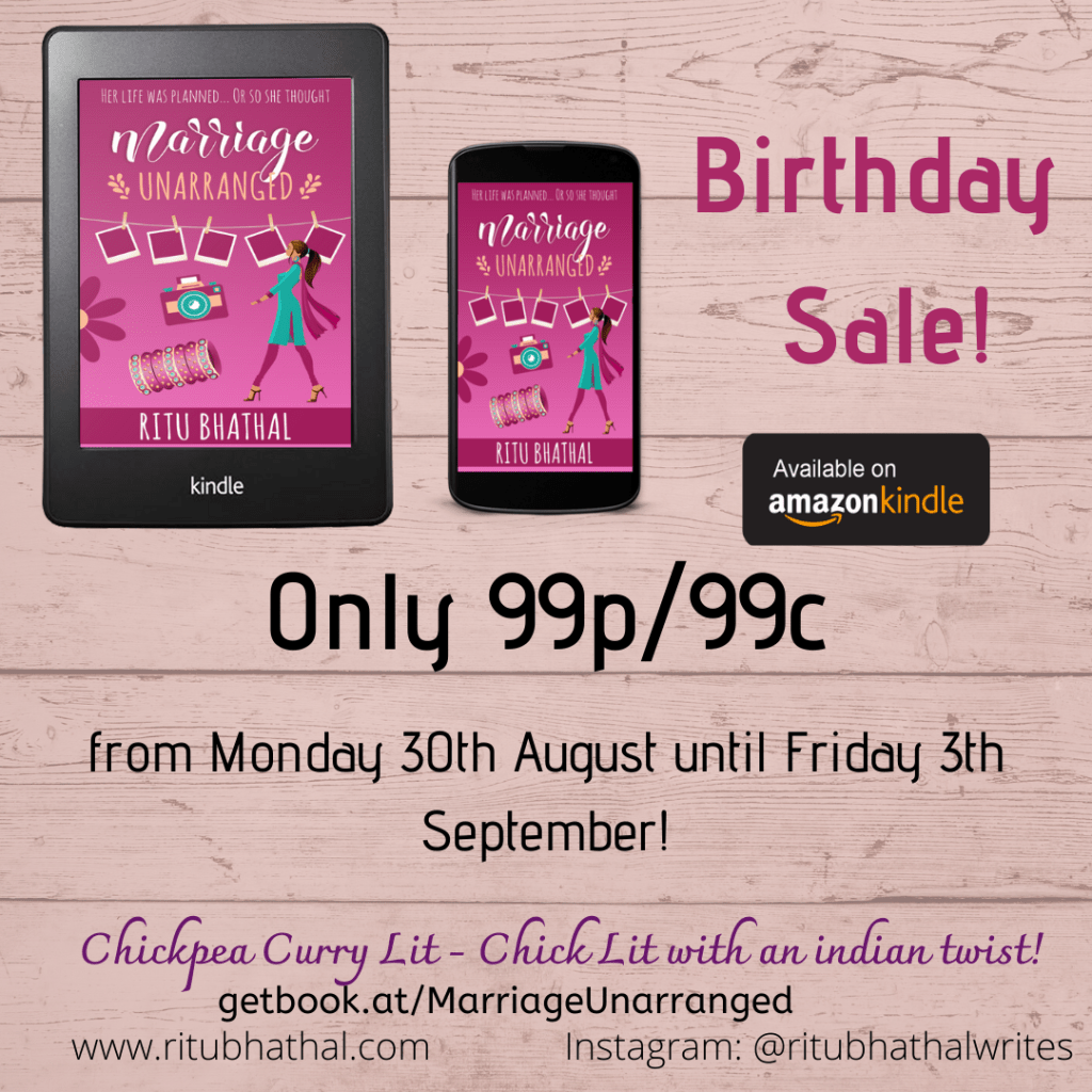 And, what with my birthday, next week, I decided to have a little sale on Marriage Unarranged, so if you haven’t already, grab a Kindle copy for 99p/99c on Amazon.com or Amazon.co.uk! From Friday 28th August, to Thursday 3rd September. Go on, make a writer’s day, buy a copy!