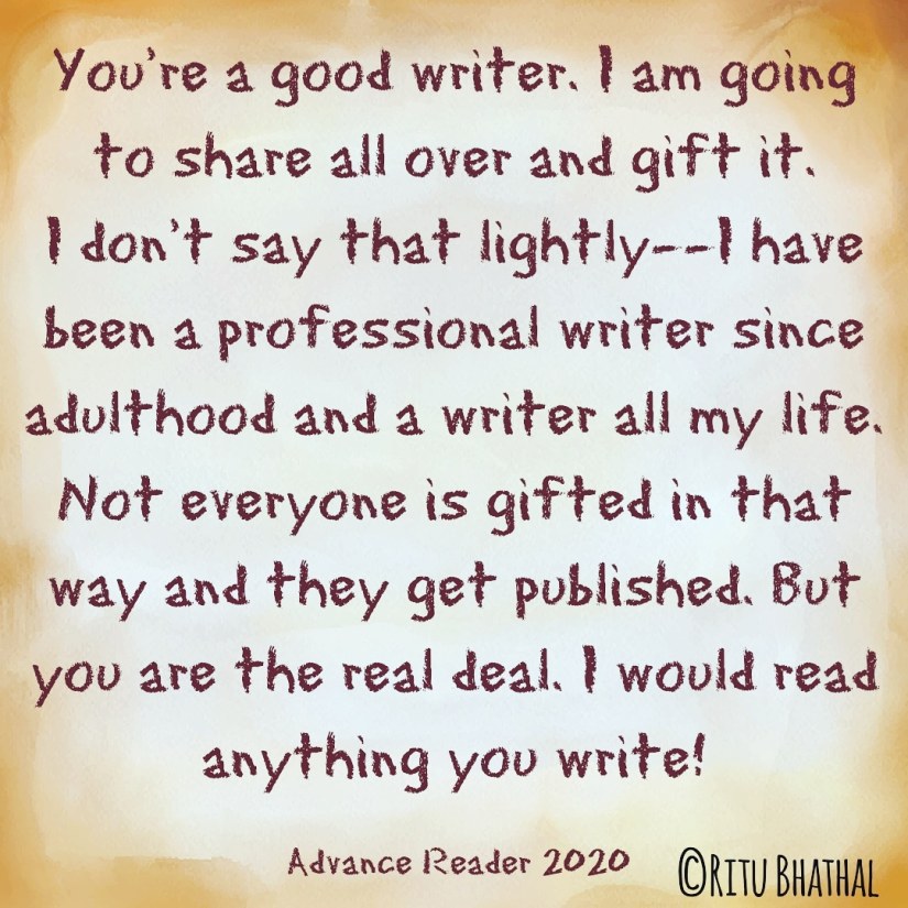 I have had some lovely words sent to me, from an advanced reader, that brought tears to my eyes.